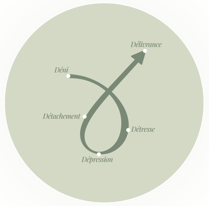 Khadidja a théorisé un parcours émotionnel unique, une signature qui nous permet de vous comprendre sans que vous ayez besoin de parler. Ce sont les 5D, les étapes du deuil que nous traversons main dans la main avec vous.